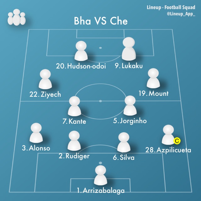 チェルシーのスターティングメンバーは、ケパ、アスピリクエタ、シウバ、リュディガー、オドイ(ヴェルナー、後半35分~)、カンテ、ジョルジーニョ(コバチッチ、後半35分~)、アロンソ、マウント、ツィエク、ルカク(ハヴァーツ、後半35分~)でフォーメーションは4-2-2-2。なお、チルウェル、ジェームズ、チャロバーは怪我のため欠場。また、クリステンセンは新型コロナウイルス陽性のため欠場となった。