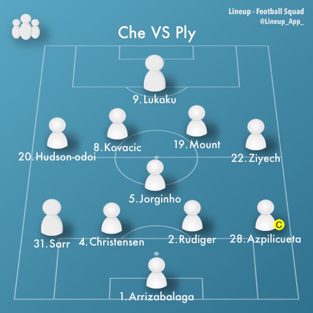 チェルシーのスターティングメンバーは、ケパ、クリステンセン(アロンソ、後半開始〜)、リュディガー、サール、アスピリクエタ(チャロバー、後半延長7分〜)、ジョルジーニョ、コバチッチ、オドイ(ハヴァーツ、後半19分〜)、マウント、ツィエク、ルカクでフォーメーションは4-1-4-1。なお、チルウェル、ジェームズ、ロフタスチークは怪我のため欠場。そしてシウバ、プリシッチは代表戦があったため欠場となった。