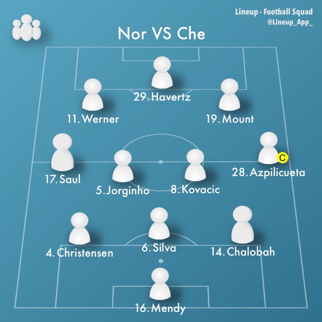 スターティングメンバーは、メンディ、チャロバー、シウバ、クリステンセン、アスピリクエタ(ロフタスチーク、後半開始~)、ジョルジーニョ、コバチッチ(カンテ、後半40分~)、サウール、マウント、ヴェルナー(ルカク、後半41分~)、ハヴァーツでフォーメーションは3-4-3。なお、チルウェル、ジェームズは怪我のため欠場となった。
