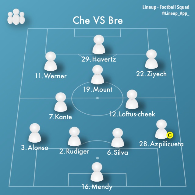 スターティングメンバーは、メンディ、アスピリクエタ、シウバ、リュディガー、アロンソ(ジェームズ、後半10分〜)、カンテ(ルカク、後半20分〜)、ロフタスチーク、マウント、ツィエク、ヴェルナー(コバチッチ 、後半19分〜)、ハヴァーツでフォーメーションは4-2-3-1。なお、チルウェル、オドイは怪我のため欠場。加えて、プリシッチは代表戦の疲れを考慮して欠場となった。