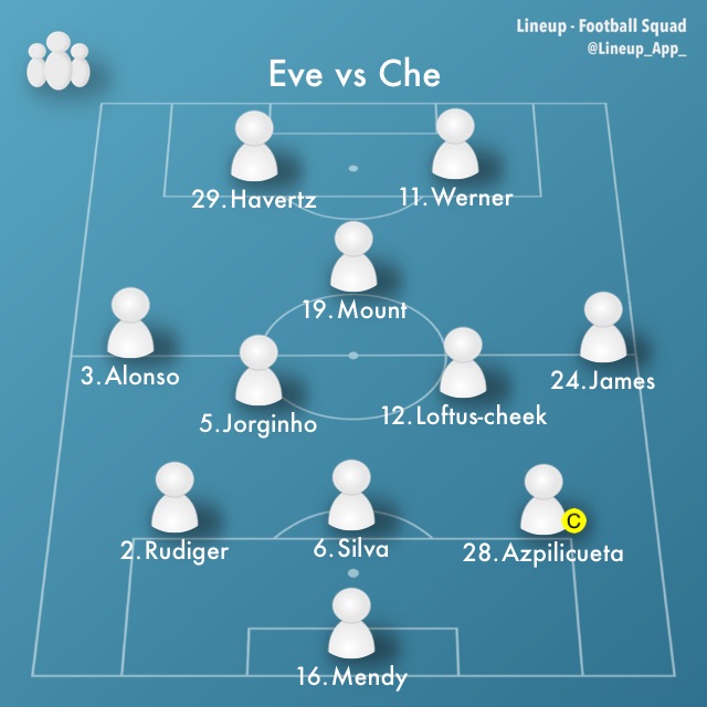 スターティングメンバーは、メンディ、アスピリクエタ(ツィエク、後半23分~)、シウバ、リュディガー、ジェームズ、ロフタスチーク、ジョルジーニョ(コバチッチ、後半開始~)、アロンソ、マウント、ハヴァーツ、ヴェルナー(プリシッチ、後半23分~)でフォーメーションは3-4-1-2。なお、チルウェル、オドイ、クリステンセン、バークリーは怪我や病気のため欠場となった。