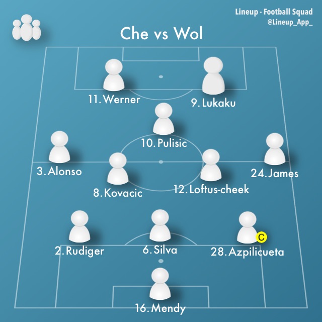 スターティングメンバーは、メンディ、アスピリクエタ(サール、後半42分〜)、シウバ、リュディガー、ジェームズ、コバチッチ、ロフタスチーク、アロンソ(サウール、後半開始〜)、プリシッチ、ヴェルナー、ルカク(ハヴァーツ、後半45分〜)でフォーメーションは、3-4-1-2。なお、チルウェル、オドイ、カンテ、ジョルジーニョは怪我のため欠場となった。