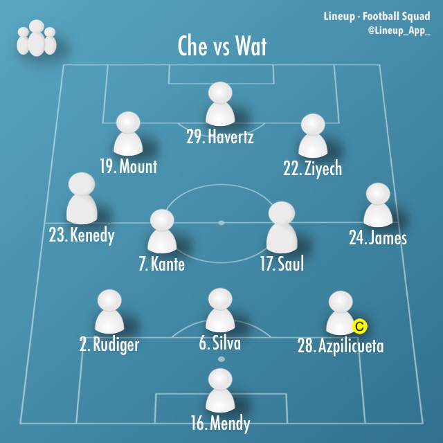 スターティングメンバーは、メンディ、アスピリクエタ、シウバ、リュディガー(バークリー、後半21分~)、ジェームズ、サウール、カンテ、ケネディ(サール、後半14分~)、ツィエク、マウント(チルウェル、後半44分~)、ハヴァーツでフォーメーションは3-4-2-1。なお、コバチッチ、オドイは怪我のため欠場となった。