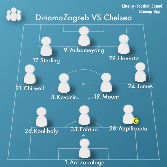 スターティングメンバーは、ケパ、アスピリクエタ、フォファナ、クリバリ、ジェームズ、マウント、コバチッチ、チルウェル、ハヴァーツ、オーバメヤン、スターリングでフォーメーションは3-4-3。