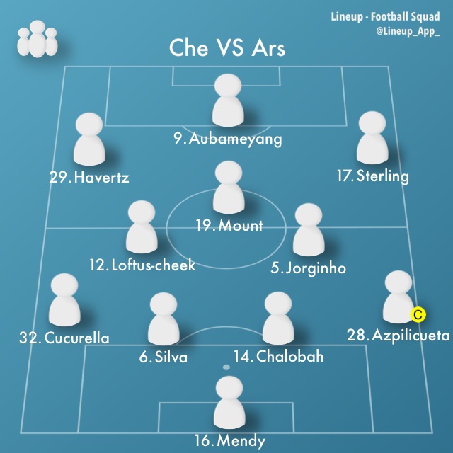 スターティングメンバーは、メンディ、アスピリクエタ、シウバ、チャロバー、ククレジャ、ロフタスチーク、ジョルジーニョ、マウント、ハヴァーツ、スターリング、オーバメヤンでフォーメーションは4-2-3-1。