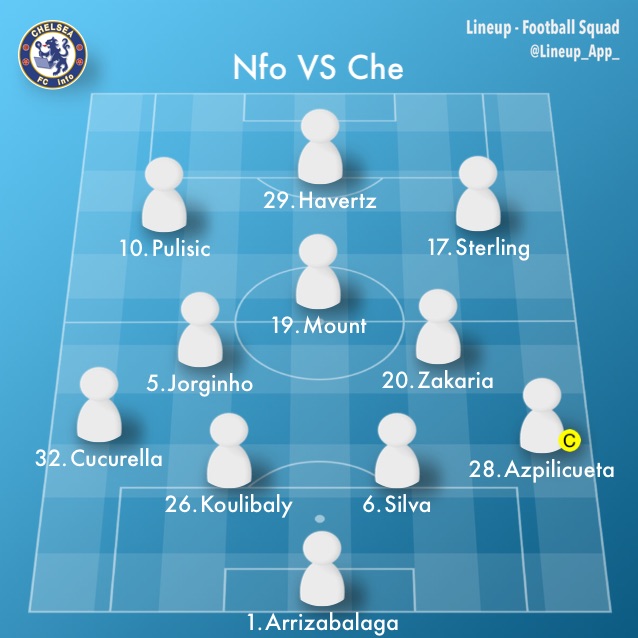 スターティングメンバーは、ケパ、アスピリクエタ、シウバ、クリバリ、ククレジャ、ジョルジーニョ、ザカリア、プリシッチ、マウント、スターリング、ハヴァーツでフォーメーションは、4-2-3-1。