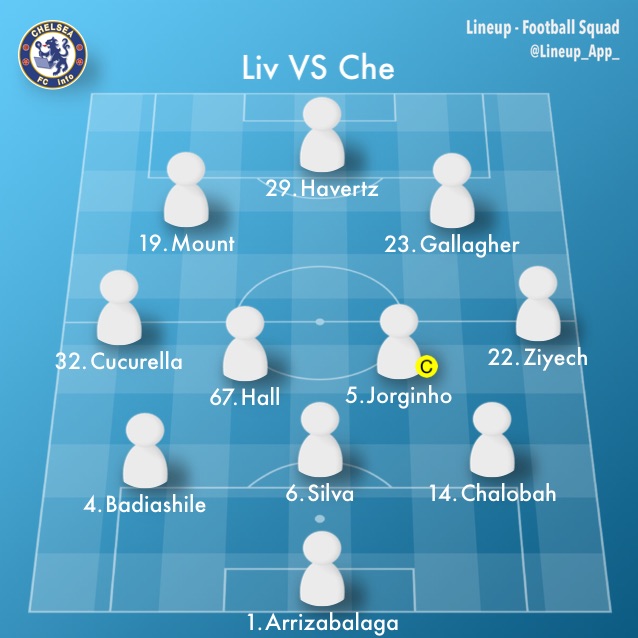 スターティングメンバーは、ケパ、チャロバー、バディアシル、シウバ、ククレジャ、ジョルジーニョ、ホール、ギャラガー、ツィエク、マウント、ハヴァーツでフォーメーションは3-4-2-1。