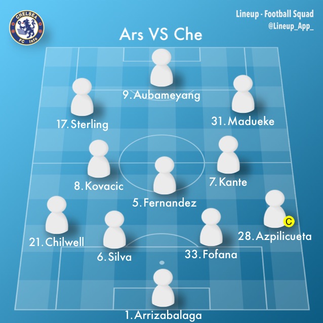 スターティングメンバーは、ケパ、フォファナ、シウバ、アスピリクエタ、チルウェル、フェルナンデス、カンテ、コバチッチ、マドゥエケ、スターリング、オーバメヤンでフォーメーションは、4-3-3。