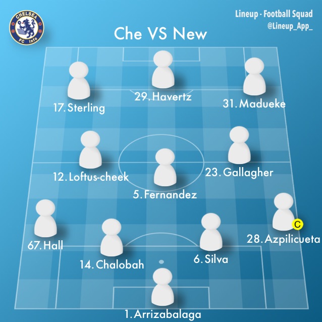 スターティングメンバーは、ケパ、アスピリクエタ、シウバ、チャロバー、ホール、フェルナンデス、ギャラガー、ロフタスチーク、マドゥエケ、スターリング、ハヴァーツでフォーメーションは4-3-3。