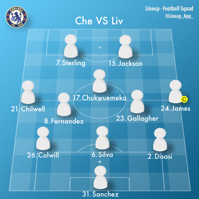スターティングメンバーは、サンチェス、ディサシ、シウバ、コルウィル、ジェームズ、フェルナンデス、ギャラガー、チルウェル、チュクエメカ、スターリング、ジャクソンでフォーメーションは3-5-2。