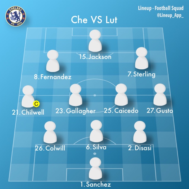 スターティングメンバーは、サンチェス、ディサシ、シウバ、コルウィル、ギュスト、フェルナンデス、ギャラガー、チルウェル、カイセド、スターリング、ジャクソンでフォーメーションは3-4-2-1。