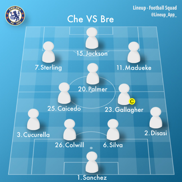 スターティングメンバーは、サンチェス、ディサシ、シウバ、コルウィル、ククレジャ、カイセド、ギャラガー、マドゥエケ、パルマー、スターリング、ジャクソンでフォーメーションは4-2-3-1。