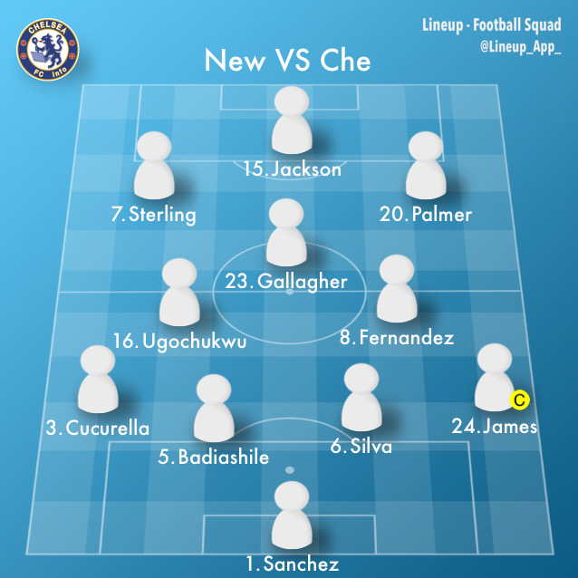 スターティングメンバーは、サンチェス、ジェームズ、シウバ、バディアシル、ククレジャ、ウゴチュク、フェルナンデス、ギャラガー、パルマー、スターリング、ジャクソンでフォーメーションは4-2-3-1。