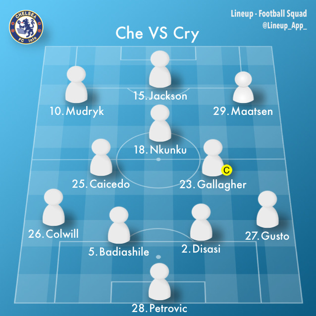 スターティングメンバーは、ペトロヴィッチ、ギュスト、ディサシ、バディアシル、コルウィル、カイセド、ギャラガー、エンクンク、マートセン、ムドリク、ジャクソンでフォーメーションは4-2-3-1。