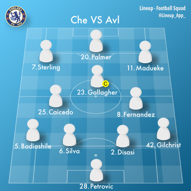 スターティングメンバーは、ペトロヴィッチ、バディアシル、ディサシ、シウバ、ギルクリスト、カイセド、フェルナンデス、ギャラガー、パルマー、スターリング、マドゥエケでフォーメーションは4-2-3-1。