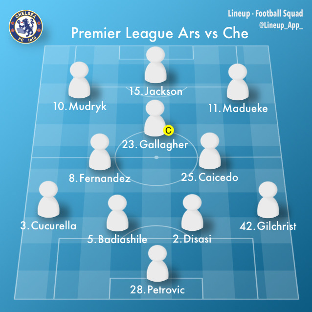スターティングメンバーは、ペトロヴィッチ、ギルクリスト、ディサシ、バディアシル、ククレジャ、カイセド、フェルナンデス、ギャラガー、マドゥエケ、ムドリク、ジャクソンでフォーメーションは4-2-3-1。