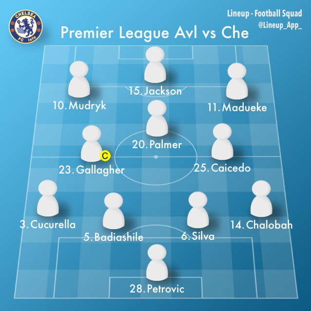 スターティングメンバーは、ペトロヴィッチ、チャロバー、シウバ、バディアシル、ククレジャ、カイセド、ギャラガー、パルマー、マドゥエケ、ムドリク、ジャクソンでフォーメーションは4-2-3-1。