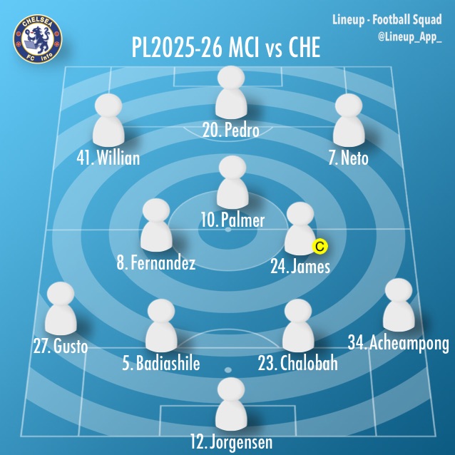 - チェルシー, マンチェスターシティ, Match results, Premier League2025-26, スターティングメンバー, マレスカ監督退任, マンチェスターシティ対チェルシー, カラム・マクファーレン, 暫定監督, プレミアリーグ