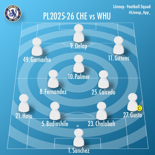 - スターティングメンバー, 試合分析, ロシニアー監督コメント, チェルシー対ウエストハムユナイテッド, チェルシー, 試合結果, Chelsea FC, Match results, ジョアン・ペドロ, プレミアリーグ2025-26, Premier League2025-26